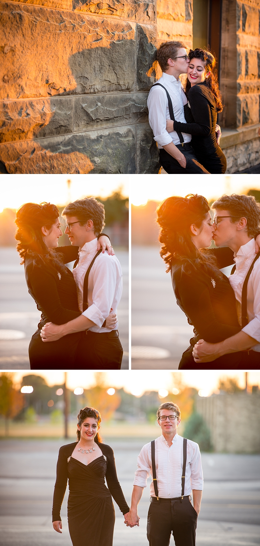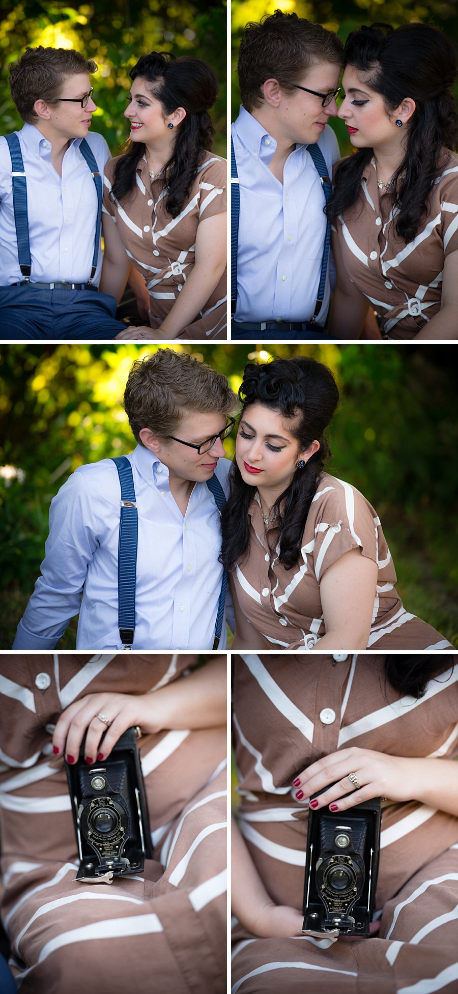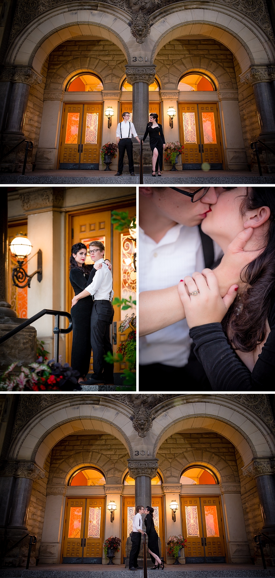 Rachel : Bay City Hall Vintage Engagement SessionWell we went to get coffee together on Monday mornings. We were just friends but we talked for hours and just enjoyed each other’s company. Then Nathan asked me on an “official date”. We got Chinese food and watched Phantom of the Opera cause that’s my favorite movie and he’d never seen it. I sang every song and made a fool out of myself but he kissed me that night so it was a success!