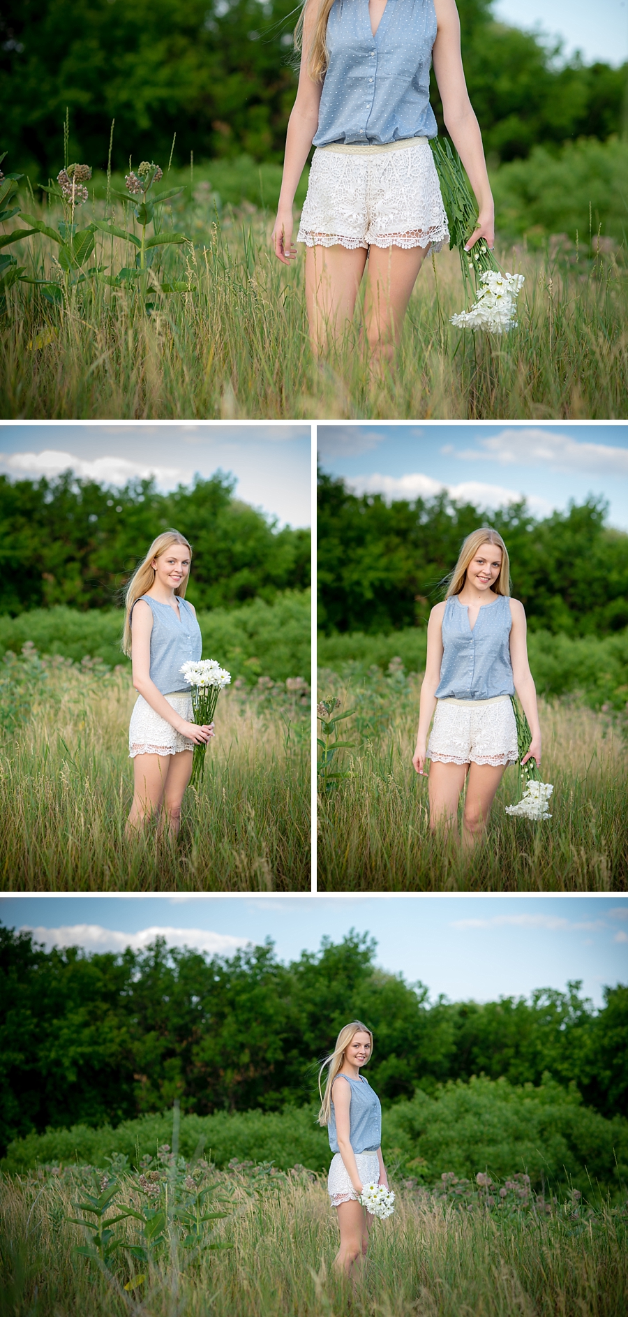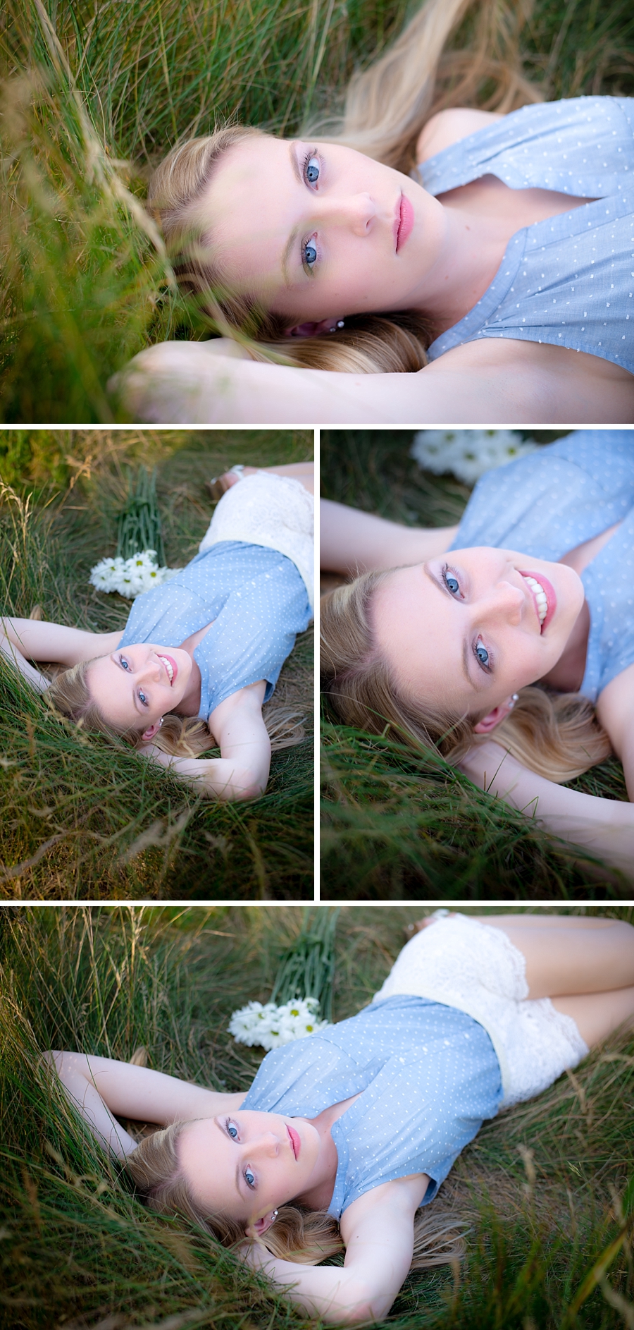 My favorite look was the one where I was in the field. I liked laying down in the grass and looking up at the camera. It was a unique angle, and my blue eyes popped out and matched my blue shirt. This created a soft yet cute look.
